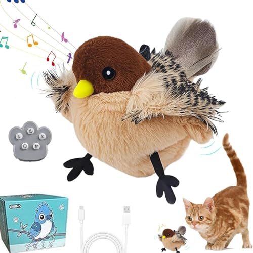 Starnearby Flapping Bird Cat Toy, Simulated Flying Interactive Automatic Flappy Bird Toy with Remote Control, Flapping Wings Chirping Bird Chase Cat Toy for Indoor Cats to Bite (Sparrow)