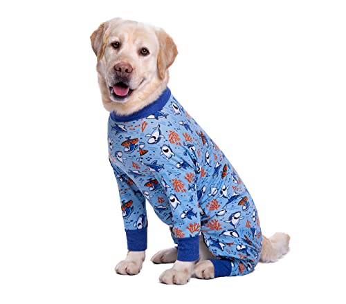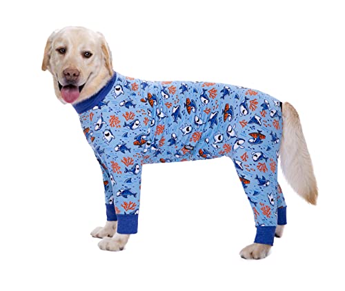 BT Bear Large Dog Clothes, Elastic Pet Onesie Clothes Protect Joints Anti-hair Anti Licking, Wound Protection Pet Pajamas PJS Dog Jumpsuit For Medium Large Dogs(5XL,Blue Shark)