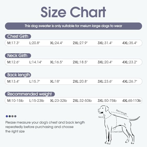 6 sizes to choose from: The dog turtleneck sweater is suitable for medium to large dogs. Beagle, Poodle, Bulldog, Schnauzer, Labrador Retriever, Golden Retriever, French Bulldog, Boxer, German Shepherd, Great Dane, Doberman, Boston Terrier, etc