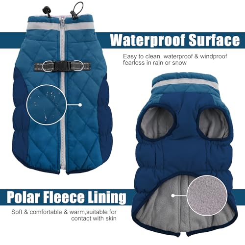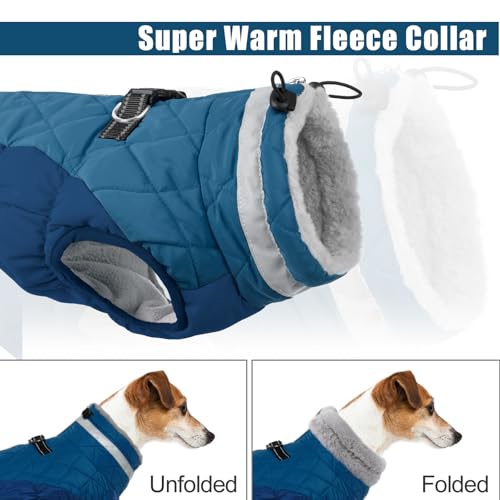 【Water Resistant】The surface of the dog winter jacket is made of water resistant fabric, which keeps your dog dry and warm on foggy day, even little raining or snow. The inner layer is polar fleece, which touches soft and comfortable, accompany your fluffy friends through the cold weather.
