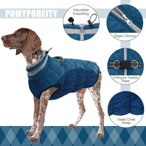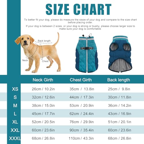 【Reflective & D-Ring】Reflective strips on the neckline of the waterproof dog jacket can improve visibility in low-light conditions. There are double strong metal D-rings on the back of the dog winter coat which can be attached to the leash, more convenient for walking the dog.