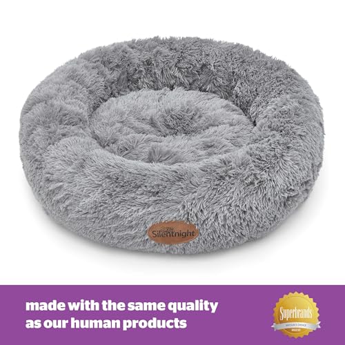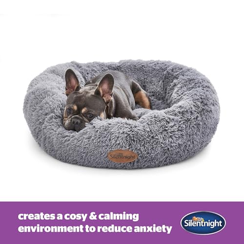 Silentnight Donut Calming Dog Bed – Calming Dog Cat Pet Bed Anxiety Relief Soft Fluffy Doughnut Pillow – Easy Clean Machine Washable Luxury Plush Dog Pillow Basket – 85 cm – Grey