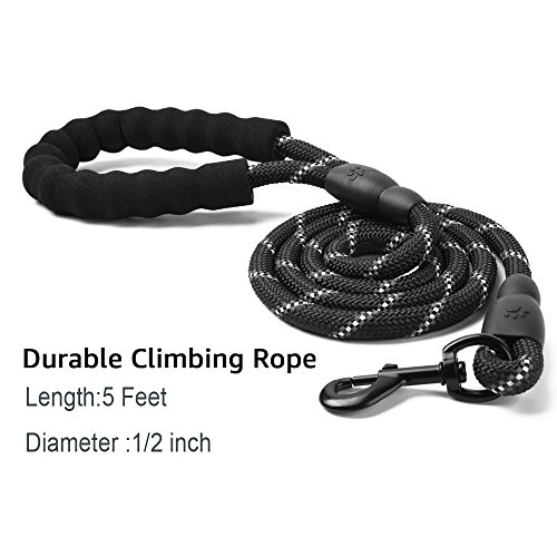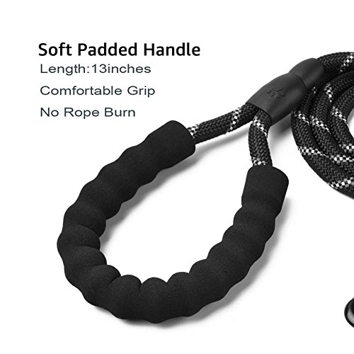 ADOGO® Rope Dog Lead with Soft Padded Handle and Reflective Threads Nylon Durable Dog Leash Safety 5FT Mountain Climbing Rope Twist Dog Lead For Small Medium Large Dogs (Black)