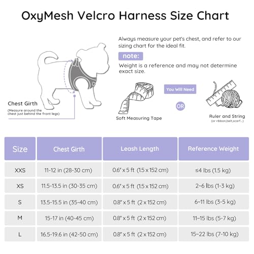 【Suitable Size】Please measure your puppy’s neck girth and chest girth, don’t choose size by weigh only, then refer to the sizing chart. If your puppy’s neck girth or chest girth is between two sizes, it is recommended that choose the larger size.