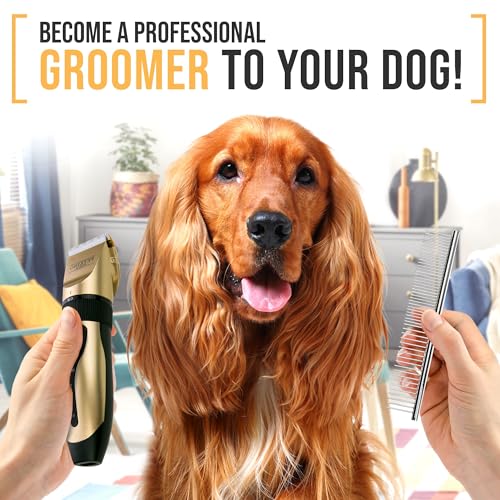 PetKing Premium Dog Clippers Dog Grooming Kit Grooming Clippers Professional for Thick Hair Coats Pet Kit for Dogs Cats Pets Cordless Silent Dogs Hair Clipper Trimmer Shaver Set Low Noise