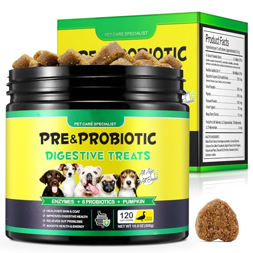 Probiotics for Dogs, Dog Probiotics for Gut Health, 120 Chews Dog Probiotic Supplements – Support Gut & Digestive Health, Allergy Itch Relief, Reduce Diarrhea, Loose Stools, Strengthen Immunity Health