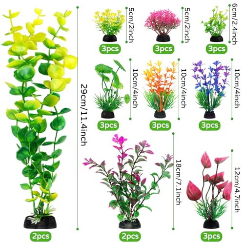 Aquarium Decorations: 25 colourful artificial plants aquarium deco in different styles: (3 to 30 cm).