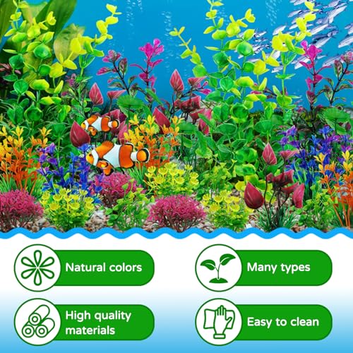 QUOZUO 25 Pieces Artificial Plants Aquarium Decoration Colourful Plant Terrarium Plant Decoration for Aquarium Fish