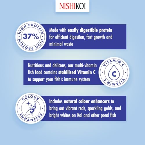 Watch your Koi and pond fish thrive on Nishikoi Growth pellets, containing 37% protein for efficient digestion, fast growth and less waste to help maintain a clean and healthy pond!