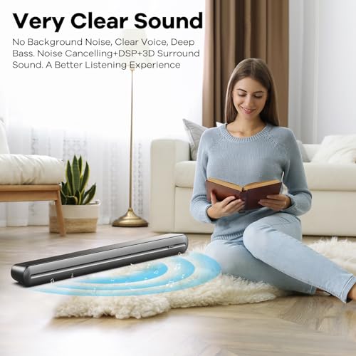 Clear Sound: Via background noise Cancelling, no background noise in low volume and quiet environment.,≤1% distorition, get very clear sound. suitable for 32″-55″ smart tv,recommend room size:≤ 376 ft² / 35m².