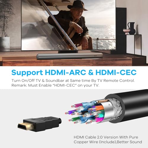 Wide Applications – Multiple Connections: Support HDMI-CEC & HDMI ARC, Bluetooth, Optical, Coaxial and Aux, works with smart TV, projector, pc / laptop, DVD player, game consoles, etc.Tabletop and wall mount. Remote control included.